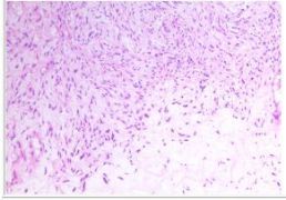 术中冰冻快速:梭形细胞肿瘤,细胞轻-中度异型,不除外恶性病变,待常规石蜡和免疫组化进一步明确。
