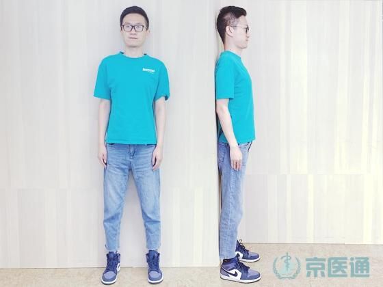 靠墙站立,双脚与髋同宽,整个身体紧贴墙壁,确保脚后跟、臀部、肩胛骨紧贴墙壁。然后看头是否能贴到墙。