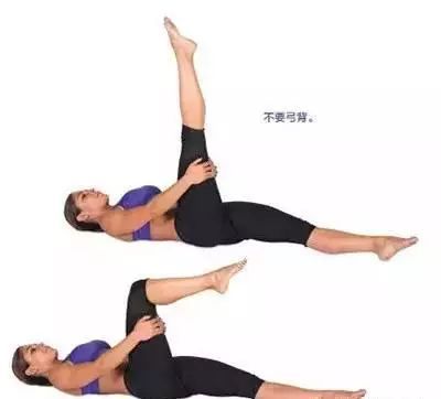 ◆ 换一侧侧卧,并用另一条腿重复上述拉伸运动。