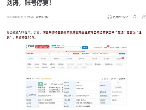 今早有媒体报道称刘涛持股的公司目前是“注销状态”,2020年入驻某平台进行直播,目前账号消息清空,已停更的消息引起了不小猜测。