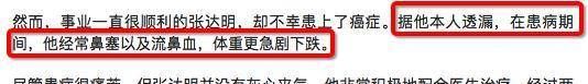 在事业的巅峰期,张达明被查出癌症,根据本人的回忆,在患病期间他经常会出现鼻塞、流鼻血等症状,治疗过程也充满痛苦。