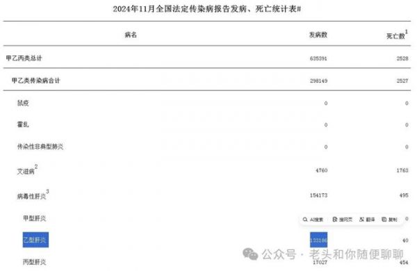2024年前11个月全国乙肝发病人数数据: