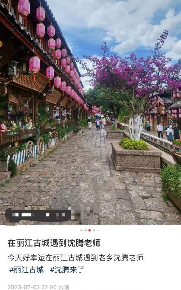7月2日晚,有网友在社交平台上传了与沈腾的合照,附文“在丽江古城遇到沈腾老师”,透露出他的行踪。