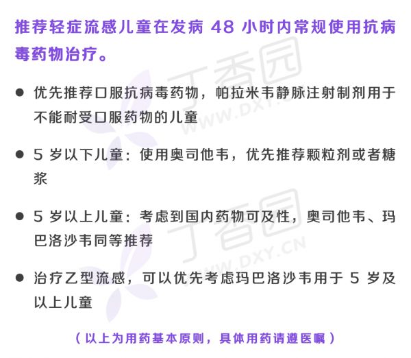 其中,儿童因为聚集性感染风险更高,一直是流感防诊治的重点群体。流感儿童在发病 48 小时内接受抗流感病毒药物治疗可以缩短发热和排毒时间,减少并发症和重症发生,可能减少继发传播。