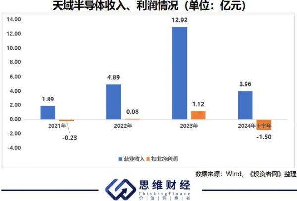 依托公司在碳化硅外延片领域的积累,2023年,天域半导体实现收入12.92亿元,实现净利润1.12亿元。据天域半导体披露,公司产品主要应用在新能源行业(电动汽车、光伏、充电桩及储能)、轨道交通、智能电网等领域。2024年来,因新能源车、光伏行业竞争加剧影响,2024年上半年,天域半导体的收入同比下降了14.79%,净利润更是出现了1.5亿元的亏损。