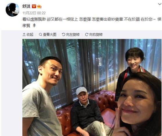 在5月22日,舒淇曾发了一张与张震以及导演侯孝贤的合照,在为导演获奖庆贺的同时,字里行间被一些影迷猜测道,两人或许有着再度合作的可能,因为从神态来看,三人都脸上都洋溢着灿烂的笑容,应该是对之前的合作都感到十分愉快,让人越来越期待,或许未来真的有新作品也说不一定呢?