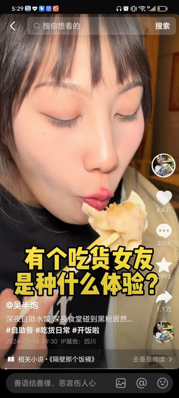 第一位:吴半饱,感觉她好厉害呀,水饺都能一次吃80个,问题是人家还是那种瘦瘦的女生。真是让人羡慕呀,吃的多还不胖。