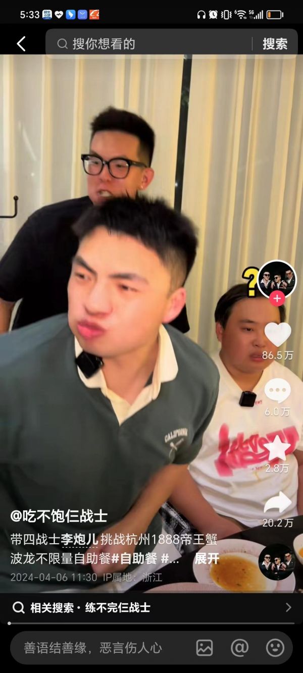 第四名:吃不饱战士,这三个人最喜欢干的就是吃自助,每次都是让服务员剥虾到手软的,天天吃那么多,也没有见人家很胖。