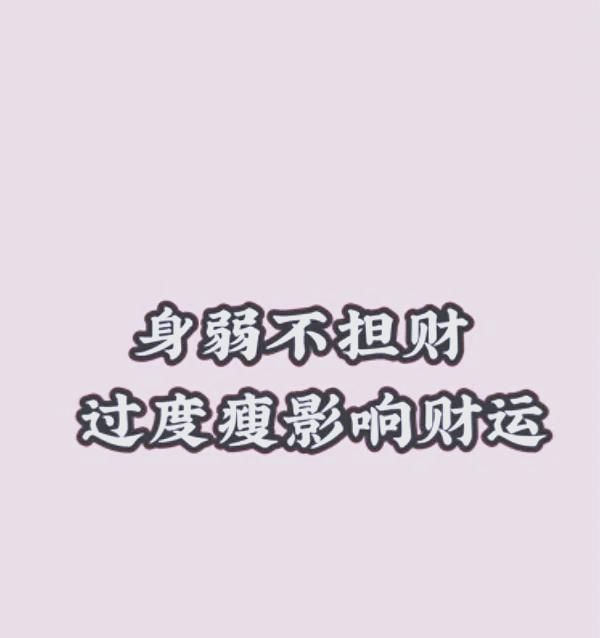 不要过度追求瘦弱,适合自己的体重才是最美的。太瘦的人,财运可能会压不住,甚至会流失。想想看,当你一段时间内暴瘦,是不是感觉财运也不佳?