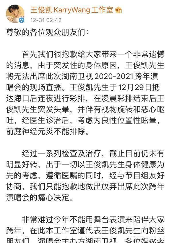 王俊凯身体突发状况!退出跨年演唱会,他近期状况实在令人心疼