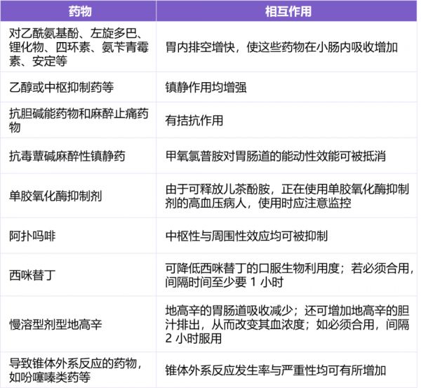 3. 甲氧氯普胺与多种药物之间存在相互作用