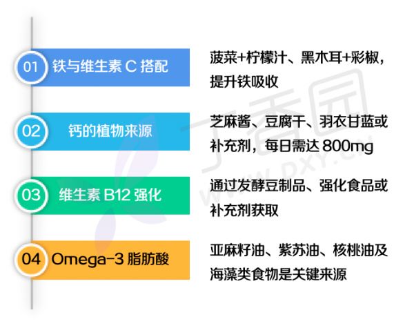 若选择素食,需针对性补足易缺营养素: