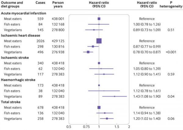 [1]Tong TYN, Appleby PN, Bradbury KE, Perez-Cornago A, Travis RC, Clarke R, Key TJ. Risks of ischaemic heart disease and stroke in meat eaters, fish eaters, and vegetarians over 18 years of follow-up: results from the prospective EPIC-Oxford study. BMJ. 2019 Sep 4;366:l4897. doi: 10.1136/bmj.l4897. PMID: 31484644; PMCID: PMC6724406.