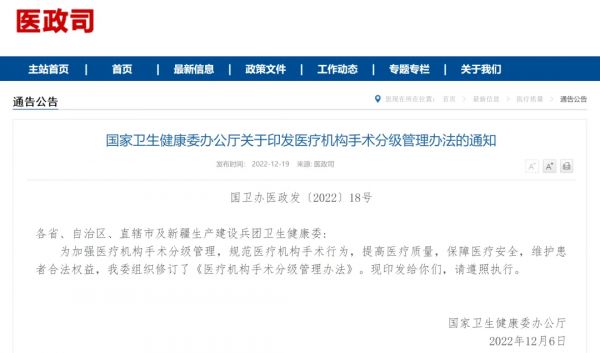 [1]医疗机构手术分级管理办法 2022 版