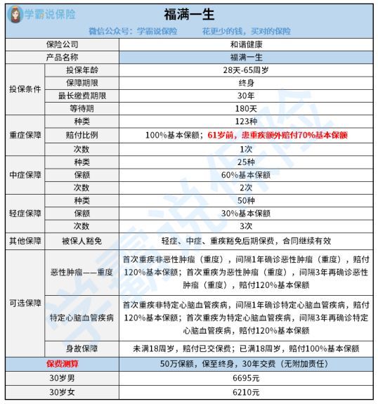和谐健康这几天刚推出的福满一生重疾险,一经推出就火爆全网,不光是因为名字取得有含义,更多是因为其重疾保障据传十分周到。