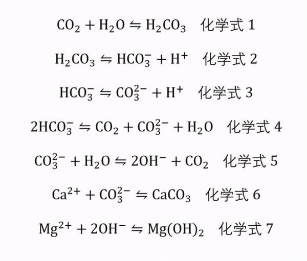 不过,当我们烧开水加热时,随着温度的升高,二氧化碳在水中的溶解度会降低,使得水中的二氧化碳逸出,从而破坏了水中原有的碳酸平衡,水中的碳酸根会分解转换为碳酸根、氢氧根和二氧化碳(参考方程式4和5)。请大家看图中的化学方程式,都是高中的化学知识哦。