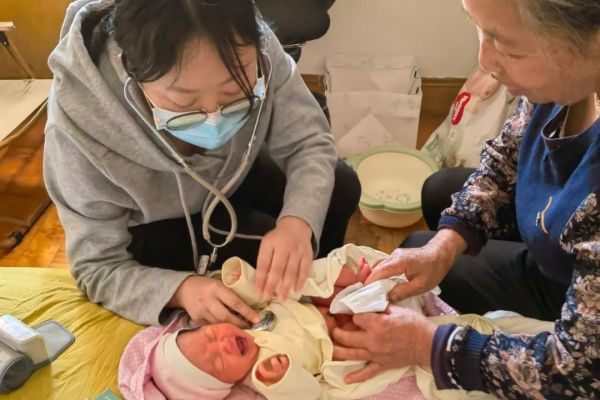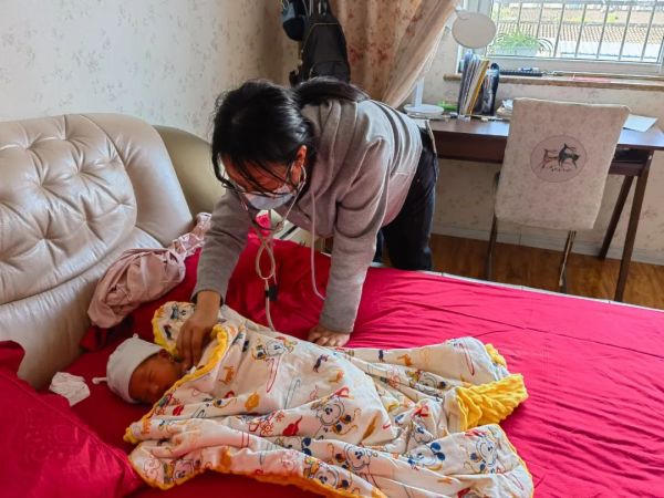 访视过程中,周子力、徐琴一行通过询问和查体,了解了产妇的身体情况、乳房、恶露、腹部伤口恢复情况,对新生儿体重、身长、体温、呼吸次数、脐部和臀部有无感染、五官及四肢活动度进行了检查,并观察精神、哭声、吸吮情况,了解大小便状况等。