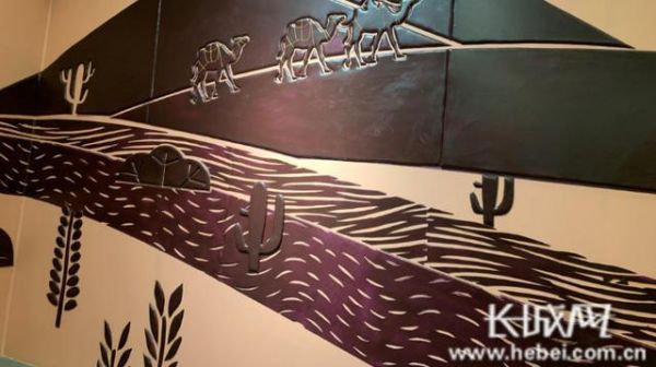 采用皮贴画技艺制作的辛集皮革发展历史墙画。长城网记者 胥文燕 摄