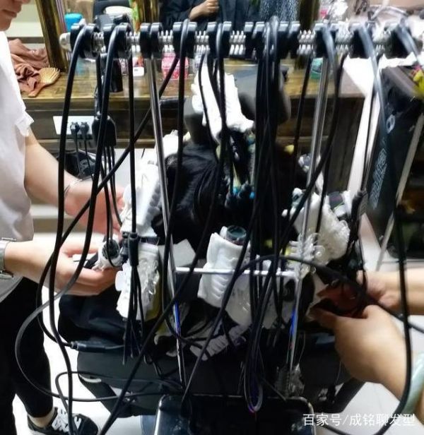 六、烫中乳化:先用冷水冲洗软化的部位,再用温水彻底冲洗到头发发涩,然后用洗发水深层清洁,尽量把软化洗干净。再用不含硅油的烫中护理产品浸泡在热水中3分钟,平衡酸碱度,补充养分,激活氢键。