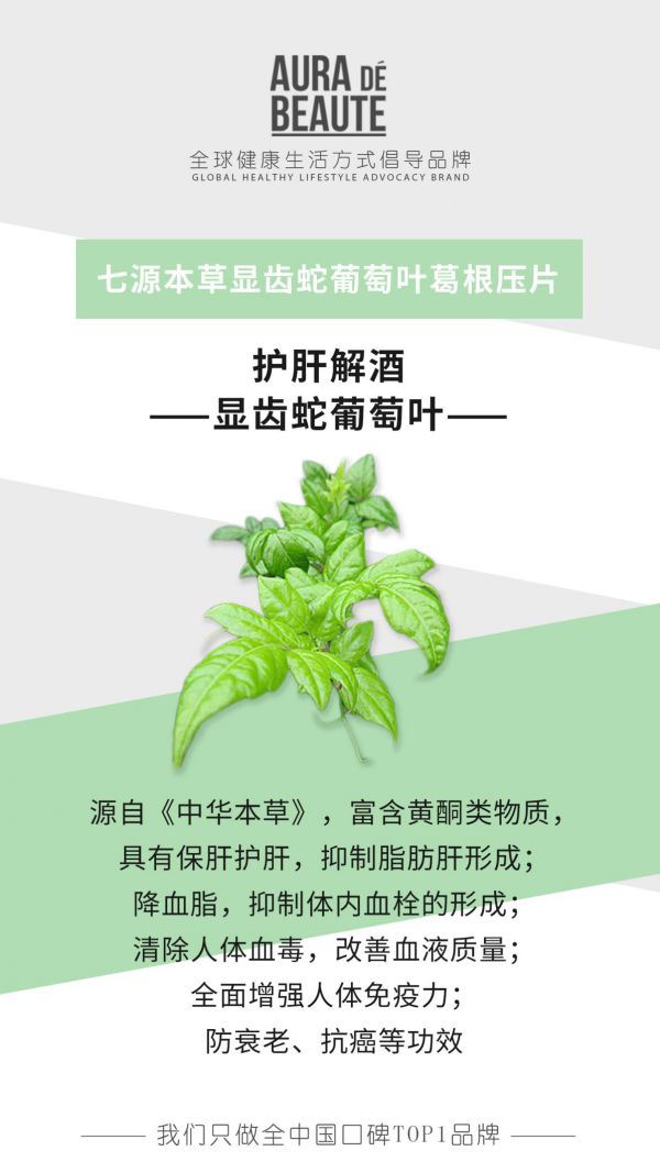 护肝解酒压片的原材料,都经过精挑细选,从原产地到产品,自然植选成就非凡品质。显齿蛇葡萄叶:富含黄酮类物质,保肝护肝利器;葛根粉:三大成分有效分解酒精,平稳血糖血脂;积椇子:拥有千年历史的解酒毒配方。