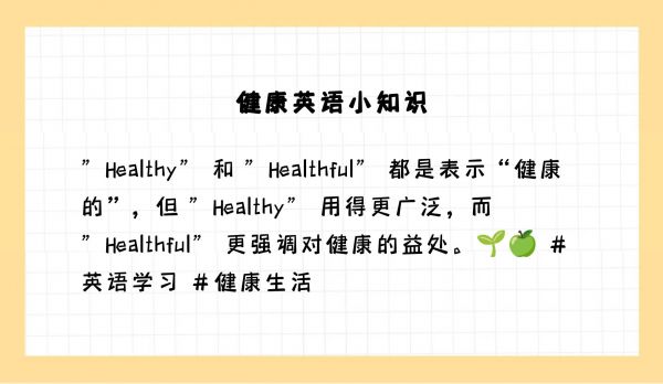 在实际使用中,“healthy” 更常用,且含义更广泛,不仅指身体的健康,还可以指其他方面的良好状态;“healthful” 则更侧重于强调对健康有益。