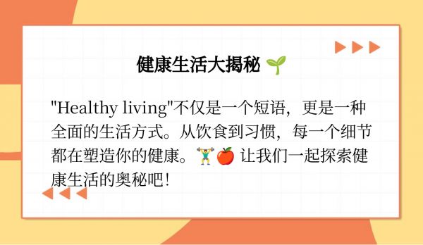 健康生活用英语可以说成 "healthy living"。这个词组是一个名词短语,由形容词 "healthy" 和名词 "living" 组成。