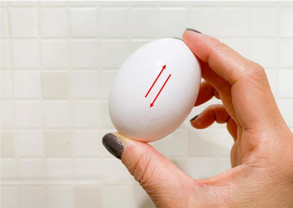 从雪柜取出鸡蛋,先上下摇晃鸡蛋,使蛋白不黏蛋壳,减少浪费。