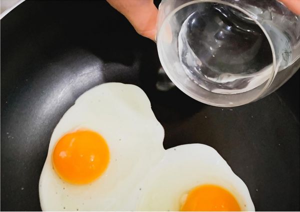 水煎蛋关键在利用水分,以半煎蒸的方式将蛋煎熟。