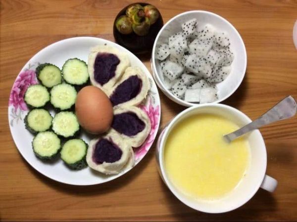 1、早餐要吃好,种类主要有奶制品、粥、糖水、饼面包等主食、水果、燕麦粥。大部分时间都是喝紫薯奶昔的,再吃一个苹果就够了,一瓶紫薯奶昔是由300克酸奶和80克紫薯搅拌成的,做酸奶时其实还放的有糖,一瓶紫薯奶昔既有蛋白质也有碳水,足够支撑一早上的。