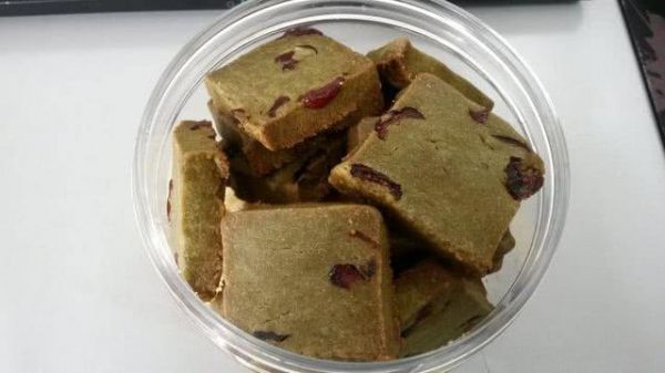 抹茶蔓越莓饼干,抹茶粉放得有点多了,但味道真不错。