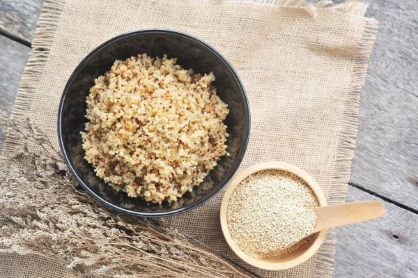 藜麦中富含膳食纤维,蛋白质含量更是高达14%-22%,对人体肌肉合成和修复颇有帮助。同时不含胆固醇,钙含量足足是小麦的4倍,有利于骨骼健康。
