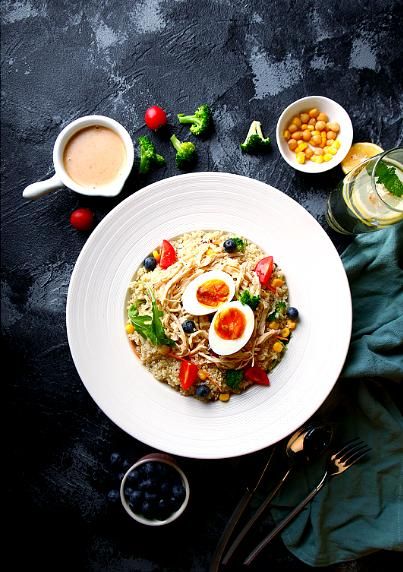 所需食材包含:鸡胸肉粒、西蓝花、虾仁、玉米粒以及牛油果片。而灵魂酱汁则选用油醋酱,由香醋、橄榄油、第戎芥末酱、大蒜末和适量盐混合搅拌而成。这款轻食简餐同样制作简便,口感清爽,非常适合追求健康饮食的人群。