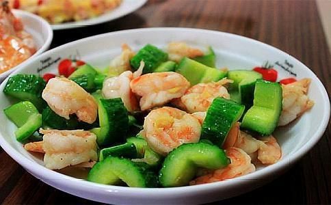 将买来的鲜虾清洗干净把该剔除了部分,剔除干净之后浸泡一段时间,然后我们可以采取炒或者是蒸煮的方式,把虾做熟。最后把黄瓜切成薄片状放在盘中,如果按照圆形摆放的话,还会体现一种美感,适合那些高档餐厅去完成。