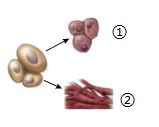 (2)A细胞通过细胞分裂形成B。在此过程中,变化最显著的是