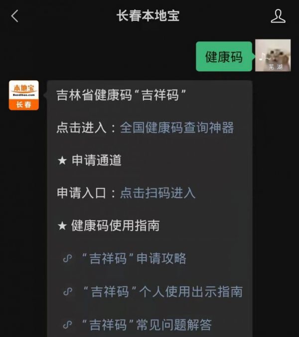 温馨提示:微信搜索公众号长春本地宝,在对话框内回复【健康码】即可获取吉林省健康码申请入口,同时获取健康码使用指南及使用相关问题!