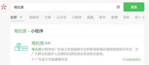 1、微信搜索”粤抗原“小程序,点击进入