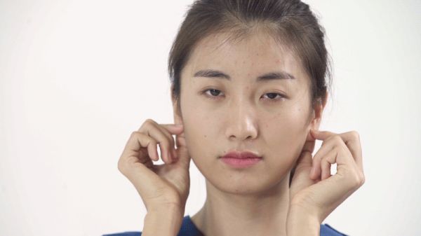 用拇指和食指轻揉双侧耳垂,同时脚趾做抓地的动作,两个动作同时进行。