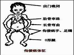 •佝偻病 (维生素D缺乏病,维生素D缺乏性佝偻病,骨软化,骨软化病,骨软化症,骨质软化,软骨病,英吉利病)