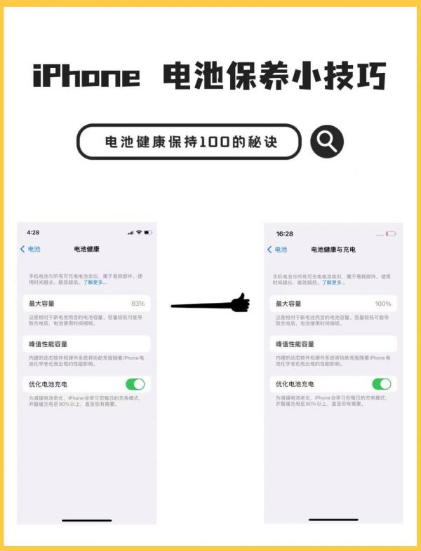 苹果手机电池容量怎么恢复100%(iPhone电池健康100%小技巧)
