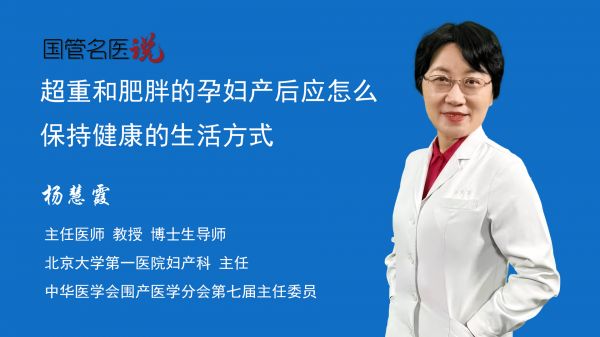 杨慧霞 主任医师 教授 博士生导师 妇产科 主任 北京大学第一医院 超重和肥胖的孕妇在产后,应该保持健康的饮食,尤其在产褥期(坐月子期间),应该避免能量摄入超标,减少高脂肪食物的摄入。很多产后女性会摄入汤类食物,但要注意饮食清淡,因为过高的油脂摄入会进一步加重产妇的脂代谢紊乱,同时也不利于体重的管理。孕妇产后还应该注意适当运动,监测体重恢复的情况。