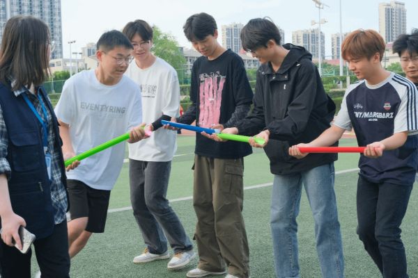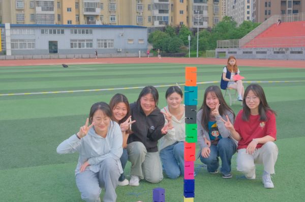 最激动人心的“合力建塔”项目,该项目要求参与者运用已有的“砖块”,按照规定的方法,在指定时间内建造一座符合要求的塔,以高度进行计分。整个过程要求平息凝神、专注目标,锻炼了同学们的默契和合作能力。与此同时,同学们的选择也至关重要,有的同学在垒到了期望高度时选择完成项目;有的同学坚持挑战,勇攀高峰,与队友一同冲击更高的目标;有的同学在“高塔”倒塌时,和队友相互打气,鼓励彼此在剩下的时间里重新开始,向阳前行。同学们纷纷表示,通过活动,不仅认识到了“众人拾柴火焰高”的积极含义,也在收获胜利硕果的同时收获了宝贵的友谊和团体协作的快乐。