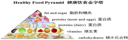 蛋白质 :meat,fish,eggs,milk,cheese milk(酸奶 ,Tofu(豆腐)…