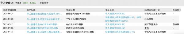 2023年3月1日上市之后,华人健康大举进行并购跑马圈地,国胜大药房的门店数量激增。Wind数据显示,华人健康陆续通过股权收购马鞍山曼迪新、舟山里肯、六安平安、安吉县百姓缘大药房公司,而收购江苏神华则是华人健康正式入局医药制造行业,新增工业生产板块。