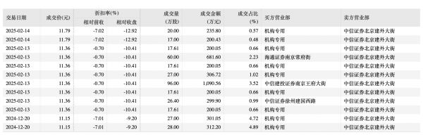 相关的减持公告未披露交易价格以及交易具体时间,而2024年12月20日-2025年2月13日间,股价最高为13.3元/股,最低为10.13元/股,2月14日最低、最高分别为12.5元/股、13.7元/股。