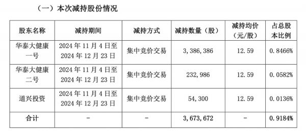 2024年3月21日,华人健康公告,公司股东华泰大健康一号、华泰大健康二号以及道兴投资计划自公告披露之日起十五个交易日后的三个月内,以集中竞价或大宗交易方式减持的股份数量不超过12,000,300股。