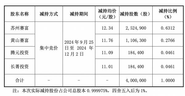 2024年12月4日,华人健康公告,赛富投资上述减持计划已实施完毕,减持之后赛富投资持有公司25,503,267股,占总股本比例为6.38%。