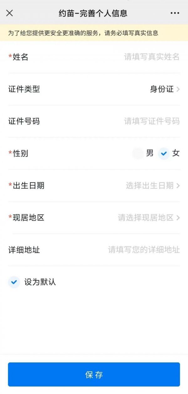 6、完善个人信息,保存提交后,选择接种时间即可完成预约。
