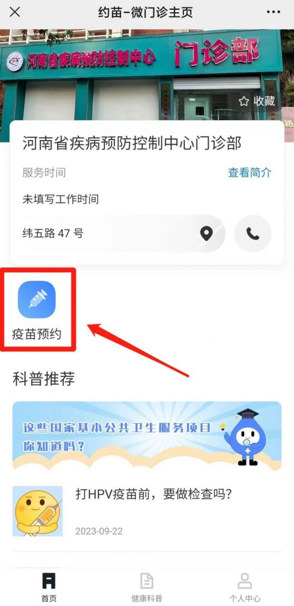 关注“河南疾控”微信公众号,即可进行线上预约。