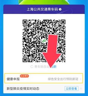 2、调出支付宝乘车码,在“乘车码”下方“健康申报”(如图);