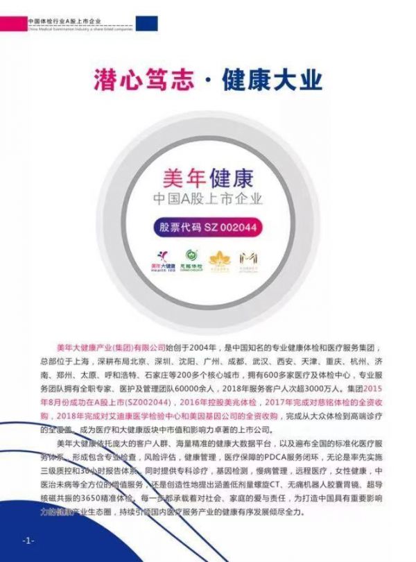 定期进行体检,是符合未来主动健康多于被动医疗的趋势的。美丽大健康一直以来,传播的一个健康理念是:医疗并不仅仅是对疾病的被动解决方案。医疗领域强调有时治愈,常常帮助,预防是定期发现,常常教育。可以确定的是,定期体检,是为自己的身体负责,让自己的寿命在主动健康下延长生长。不管是中国的医疗卫生领域,乃至世界,健康都是身体机能的循环动能,就像一辆汽车,不管零部件再高级多先进,多需要定期进行检修,更何况人体是血肉之躯呢!术业有专攻,美年健康发展至今,在行业内的口碑和地位都让它成为一家值得信赖的体检中心,在您为自身健康问题主动出击的路上,美年健康一定会给予您体贴细致到位的服务!